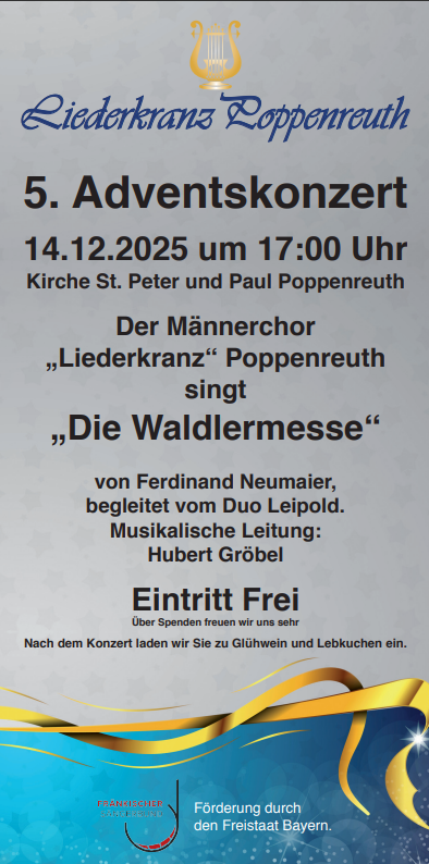 Mit unserem neuen Chorleiter - Hubert Gröbel - kehrt frischer Wind ein und alle Sänger sind neu motiviert. Unser erstes Adventskonzert, in der Poppenreuther Kirche wird ein voller Erfolg und ist mit ca. 140 Besuchern sehr gut besucht. Auch die Mitgliederzahlen steigen.