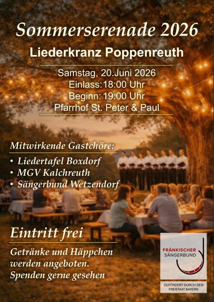 Wir laden Euch herzlich ein zu einem gemeinsamen Abend mit Liedertafel Boxdorf, MGV Kalchreuth und Sängerbund Wetzendorf.